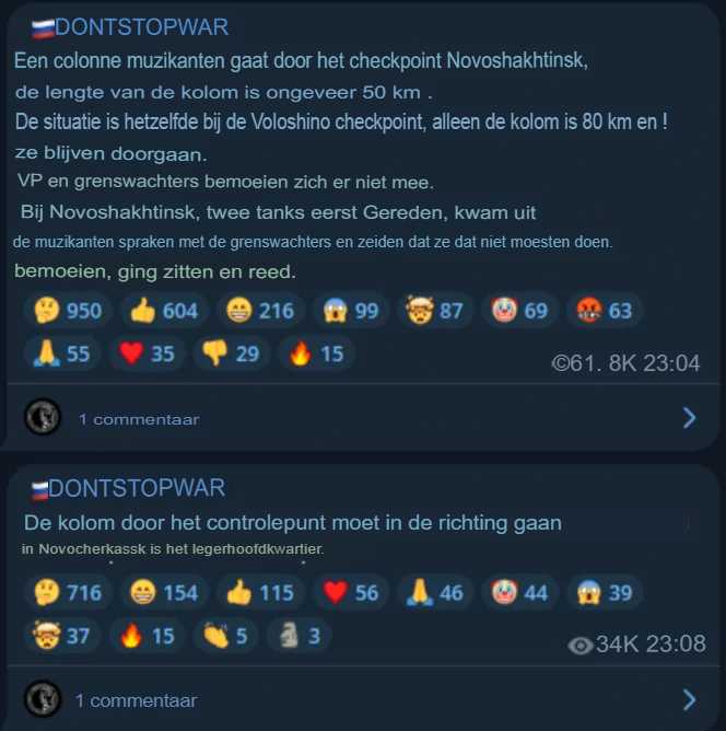 Niet alleen heeft de gouverneur van de regio Rostov alle inwoners gewaarschuwd om nu binnen te blijven, maar er zijn ook overal in de regio controleposten opgezet en de grens met Donbass is gesloten, en de veiligheid en alertheid van de nationale garde zijn verhoogd.