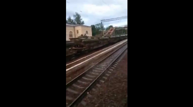 Eén zo’n video, hieronder, toont pantservoertuigen, op een trein, zo ver het oog reikt:
