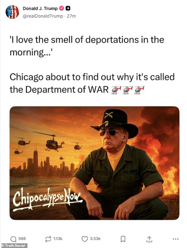 Hij toonde een door AI gegenereerde afbeelding van zichzelf als de nieuwe sheriff in de stad, met de stad in vlammen op de achtergrond, en koppelde die scène aan het nieuw opgerichte Ministerie van Oorlog. Dat had maar één doel: de kloof tussen rechts en links in dit land nog verder vergroten dan die al is.