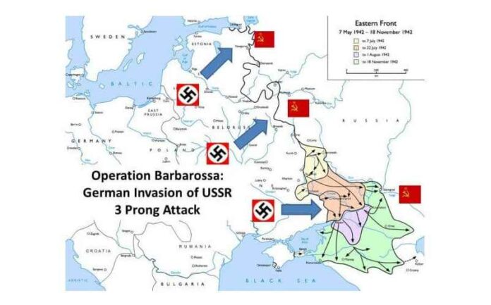 Het Bolsjewistische regime viel echter niet, omdat het direct na de Duitse inval enorme steuntoezeggingen kreeg van de USA, en aangezet werd om een zeer langdurige en extreem bloedige totale oorlog in te zetten.