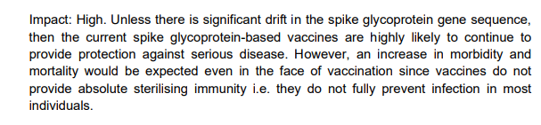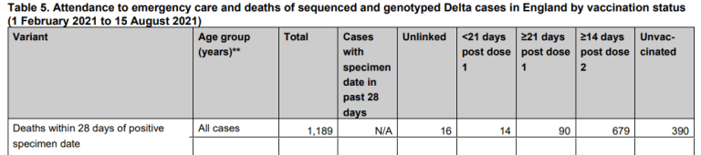 SAGE verklaarde echter dat de huidige vaccins volgens hen uitstekend zijn om het risico van ziekenhuisopname en ziekte, en dus overlijden, te verminderen. Dat is vreemd, want uit de gegevens in het 21e rapport van PHE blijkt juist het tegenovergestelde.