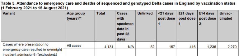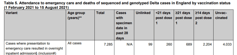 PHE brengt om de twee weken een technische briefing uit over Covid-19 varianten, en de 21e update die op 20 augustus 2021 werd vrijgegeven, levert verder bewijs; net als eerdere rapporten hebben gedaan, dat de Covid-19 vaccins in feite het risico op ziekenhuisopname en overlijden verhogen, in plaats van het te verminderen met de 95% die door de vaccinfabrikanten wordt beweerd.