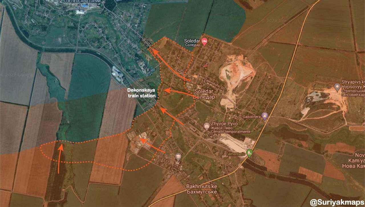 - De troepen van Donetsk en Lugansk die het Russische algemene offensief bijstonden, hebben de buitenwijk Bakhmutske (Zuid-Soledar) veroverd. Ze rukten vervolgens op naar het treinstation Dekonskaya en begonnen 1 km aan gecombineerde operaties in de richting van de zoutmijnen.