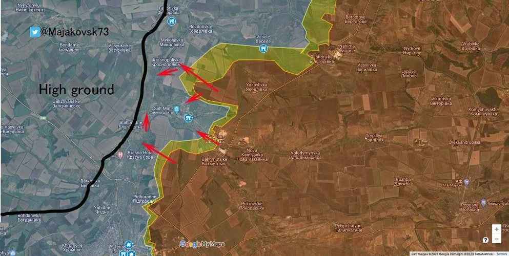 - De Russen proberen nu de Oekraïense aanvoerlijn vanuit Siversk Kramatorsk en Slavyansk af te snijden. De aanvoerlijn vanuit Bakhmut is al afgesneden.
