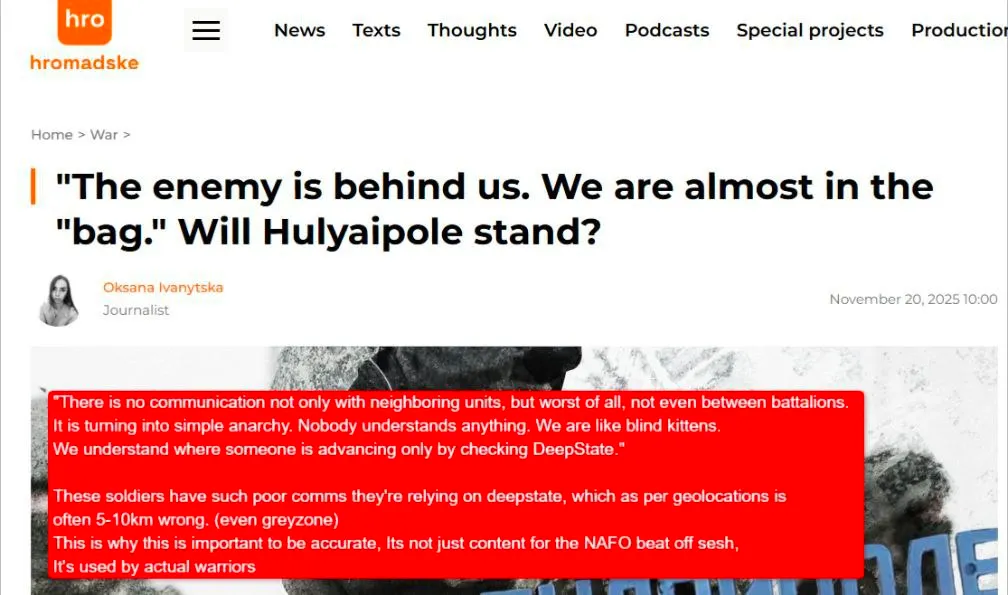 Deze soldaten hebben zulke slechte communicatie dat ze vertrouwen op DeepState, waarvan de geolocaties vaak 5–10 km verkeerd zijn (zelfs Greyzone).