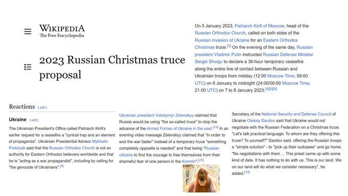 Het enige kleine probleem daarbij is dat het eerdere voorstel van Rusland voor een kerstwapenstilstand in 2023 ronduit werd afgewezen door zowel Zelensky, Biden als de Europeanen: