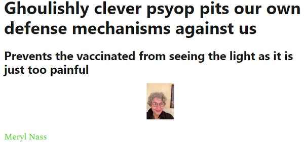 Gruwelijk slimme psyop zet onze eigen verdedigingsmechanismen tegen ons op. Verhindert de gevaccineerden het licht te zien, want dat is gewoon te pijnlijk – Meryl Nass